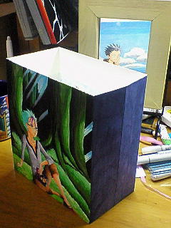 羞恥心の絵も売り物ですがこれは原品のみです。 なんだか自然を描きたくなって、海と山を描きたいと思い・・・ 海と、 山。 これ手元に持ってるのはOTTAの雑誌です。このシルエットのような人がOTTAのモデルさんになった人。 ちなみにこのオリキャラの名前が上は『河瀬 真人(まひと)』で下が『西山 連』です。 で、これを子袋の両面で描いて、組み立てたら、 こうなる。 これは後は紐をつけるだけです。 この子袋は部員全員が作ります。デザイン自由で。1個150円。 ポストカードは20円。カレンダーは100円。 色々売りますー。 よかったら買いに来てねw(笑) それとついでに演劇も観に来てね(^∀^)(笑) PR