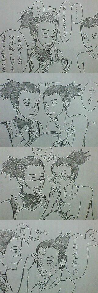 リクで、「写メでもいいよ」なんて書かれてあったのでついお言葉に甘えてデジタルにしましたOTL リクでは『シカマルとイルカさん』で、シチュは特に指定無しだったわけですね。 と、いうわけで、勝手ながらイルシカバカップルにしました。 13コマ漫画という半端なコマですがどうぞ! ※チュー描写有りです。 何気にいっちゃんも出演です。すみませんすみません。 こ、こんなんですみません!!なんだかわかりにくくてすみません! 3塊の画像なので希望の画像加工があれば言ってください。 アンケート結果・・、カカシさんを抜かしてシカマルがトップだった。いつのまに。 PR